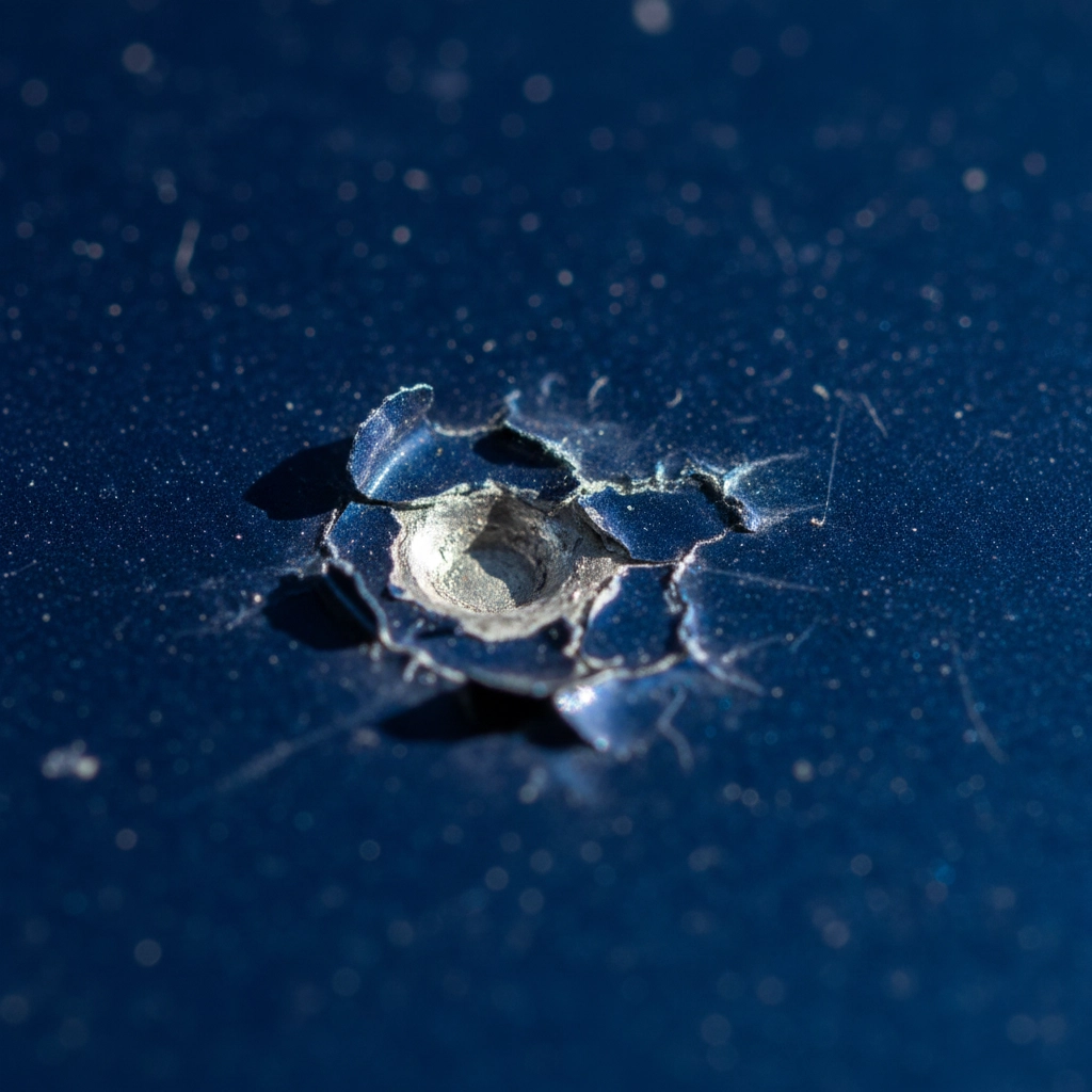Stone chips occur when road debris, gravel, or other projectiles strike your vehicle's surface at high velocity, penetrating through the paint layers to expose the underlying metal substrate. Unlike surface scratches that may only affect the clear coat, stone chips typically penetrate completely through all protective layers, creating direct pathways for moisture, oxygen, and road salt to reach vulnerable steel components.
