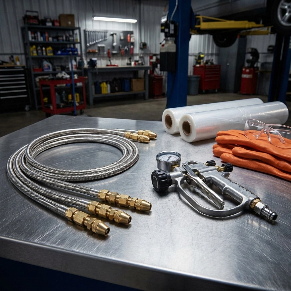 01: Vehicle Preparation and Safety Setup Secure the vehicle on level ground using appropriate jacking equipment and axle stands. Professional safety protocols demand proper vehicle support before beginning any underbody treatment.