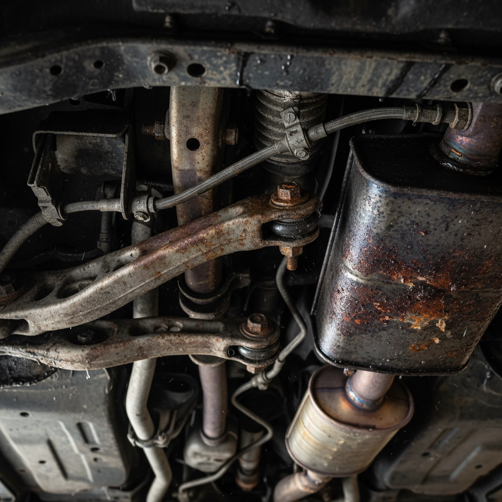 Chassis and Undercarriage: The vehicle's underside faces constant exposure to salt spray kicked up from roads, particularly during wet conditions. The chassis, suspension components, and exhaust system are all vulnerable to accelerated corrosion.