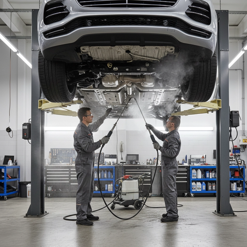 Comprehensive cleaning includes degreasing, steam cleaning, and thorough inspection of all areas to receive treatment. Professional application begins with detailed preparation protocols ensuring maximum protection effectiveness.